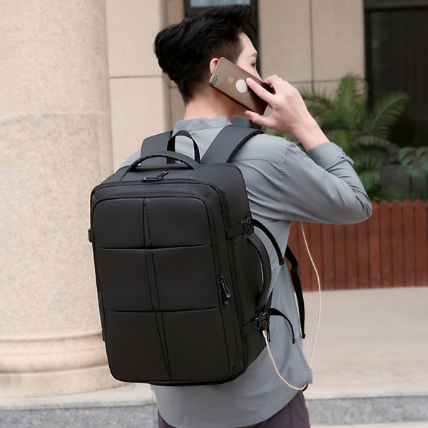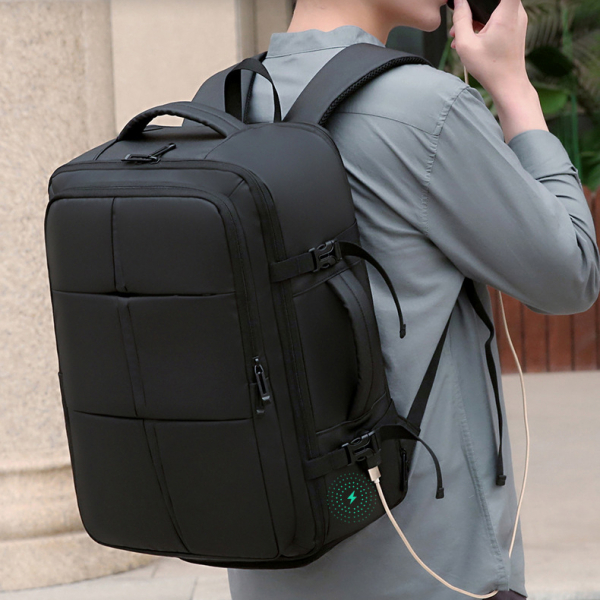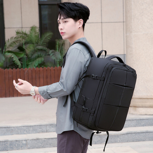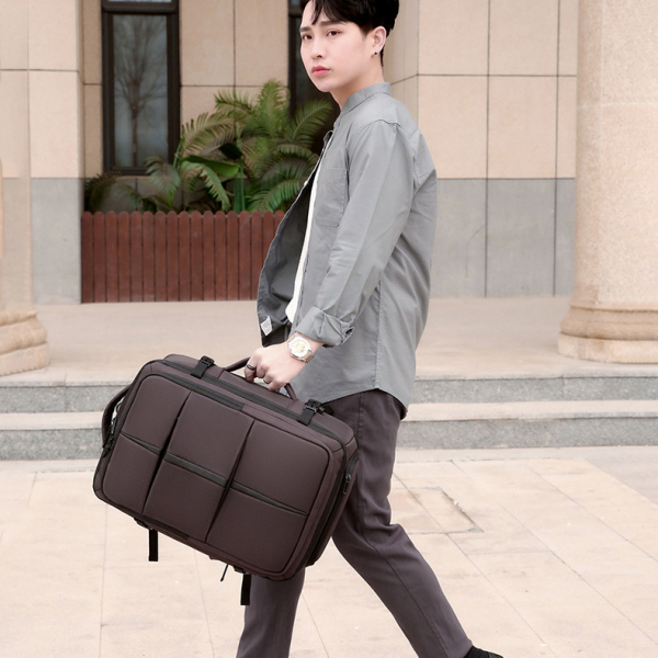 - Mang phong cách doanh nhân sang trọng, chiếc balo không chỉ phù hợp khi đeo sau lưng, mà còn có thể xách ngang như cặp táp nhờ thiết kế tay cầm phụ chắc chắn – tạo sự linh hoạt khi đi họp, di chuyển ngắn hoặc qua cửa an ninh sân bay.