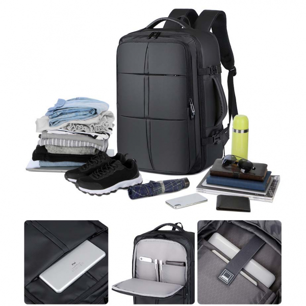 - Ngăn chính cực rộng có thể chứa laptop lên đến 17 inch, cùng tài liệu, sách vở, quần áo, giày dép