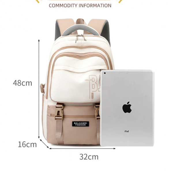 - Túi chính rộng rãi chứa được laptop 15.6”, sách vở khổ A4, quần áo, cùng nhiều ngăn phụ đựng đồ dùng học tập, chai nước, ô dù