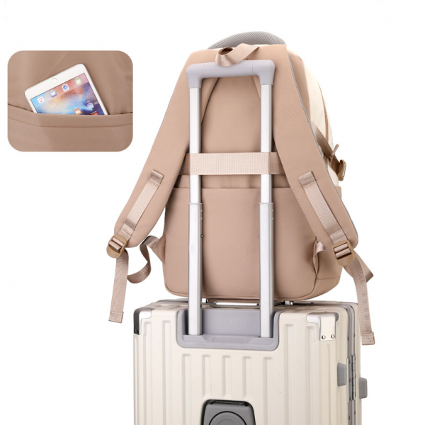 - Thiết kế quai gài thông minh phía sau balo giúp cố định dễ dàng vào cần kéo vali, tiện lợi khi đi học xa hoặc du lịch