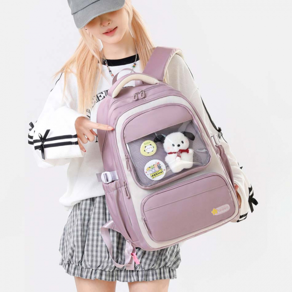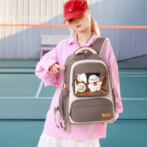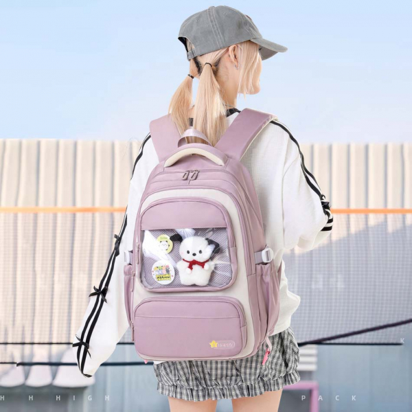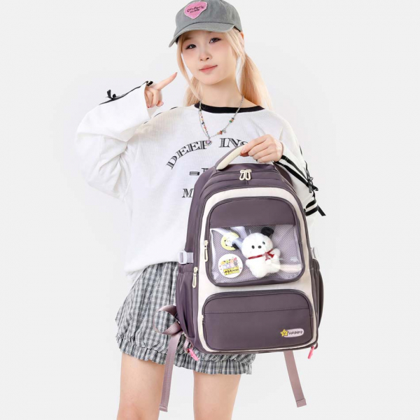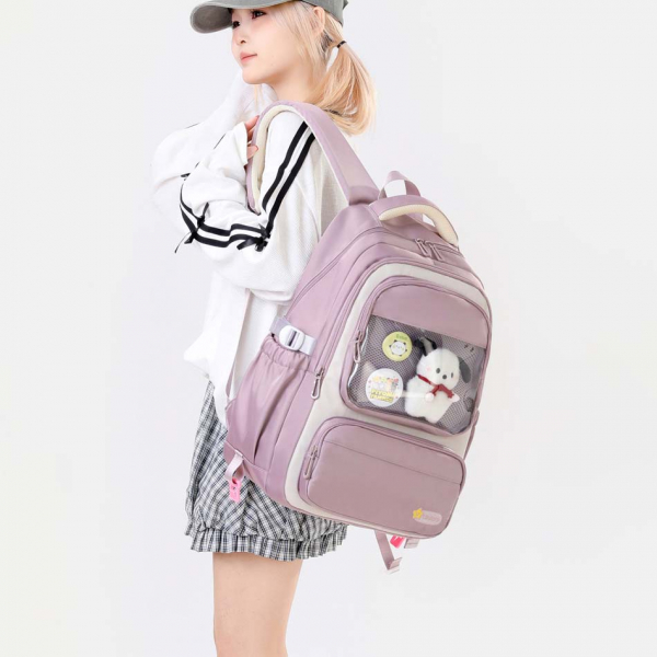 CL9839 chinh phục mọi ánh nhìn ngay từ cái nhìn đầu tiên với phần ngăn trước được thiết kế dạng mặt lưới trong suốt, cho phép bạn dễ dàng nhìn thấy chú gấu bông siêu cute đi kèm cùng các huy hiệu hoạt hình đáng yêu. Chi tiết này không chỉ tạo điểm nhấn đặc biệt mà còn giúp bạn thể hiện cá tính riêng và gu thẩm mỹ riêng biệt