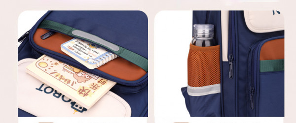 - Phân ngăn khoa học, nhiều ngăn rộng rãi, giúp bé dễ dàng sắp xếp sách vở, hộp bút, chai nước và các vật dụng cá nhân gọn gàng