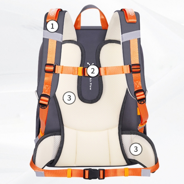 Balo học sinh chống thấm nước có dải phản quang với thiết kế đặc biệt giúp phân tán lực đều trên toàn bộ lưng bé, làm giảm trọng lực dồn tập trung lên xương sống và vai bé