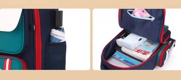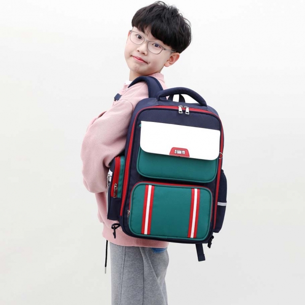 Ngăn chính rộng và có nhiều ngăn nhỏ, để ngoài không gian chứa sách vở và dụng cụ học tập