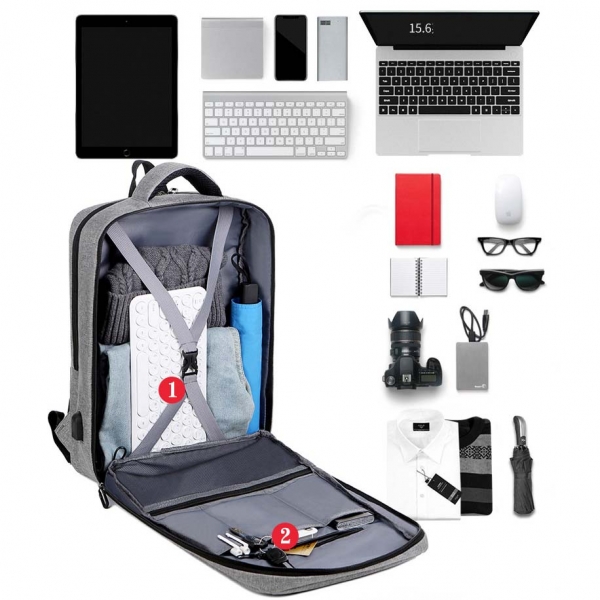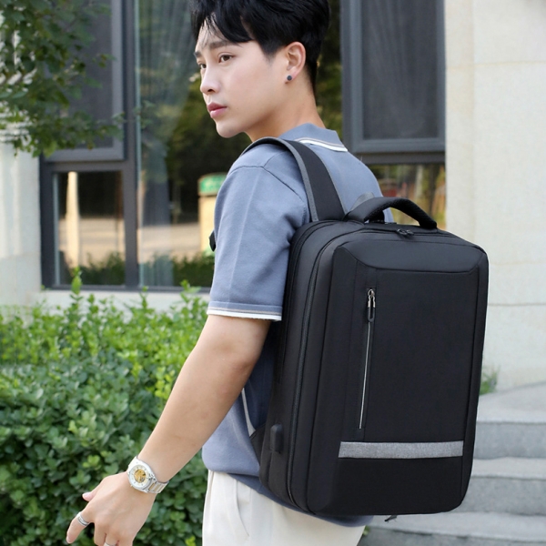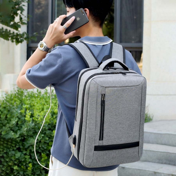 - Cổng USB ở bên hông balo, giúp bạn dễ dàng kết nối sạc dự phòng và điện thoại
