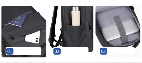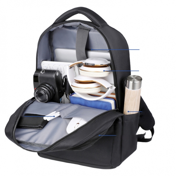 - Mặt trước của balo có ngăn phụ nhỏ, là nơi thích hợp để các loại sổ sách nhỏ, giầy tờ, tai nghe nhỏ, mắt kính, bút viết