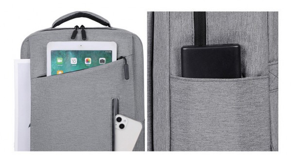 - Mặt trước của balo có ngăn phụ nhỏ, là nơi thích hợp để các loại sổ sách nhỏ, giầy tờ, tai nghe nhỏ, mắt kính, bút viết