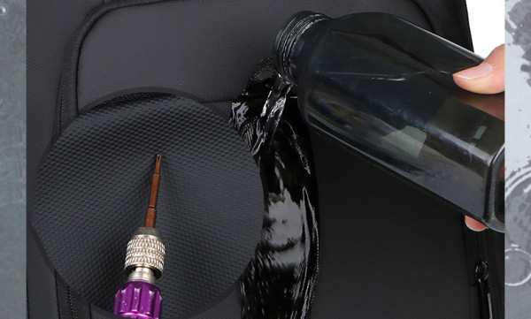 Chiếc balo được làm từ vải Oxford/Polyester cao cấp phủ lớp chống thấm nước nhẹ, giúp bảo vệ an toàn cho các thiết bị điện tử và giấy tờ bên trong khỏi mưa phùn, nước bắn, hoặc vô tình bị đổ nước.