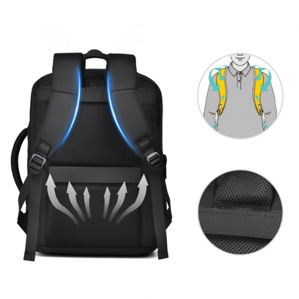 - Thiết kế nhiều ngăn, 1 ngăn chính lớn, ngăn đựng laptop chống sốc riêng biệt, ngăn phụ trước, ngăn đựng bình nước