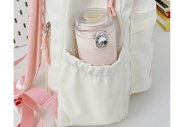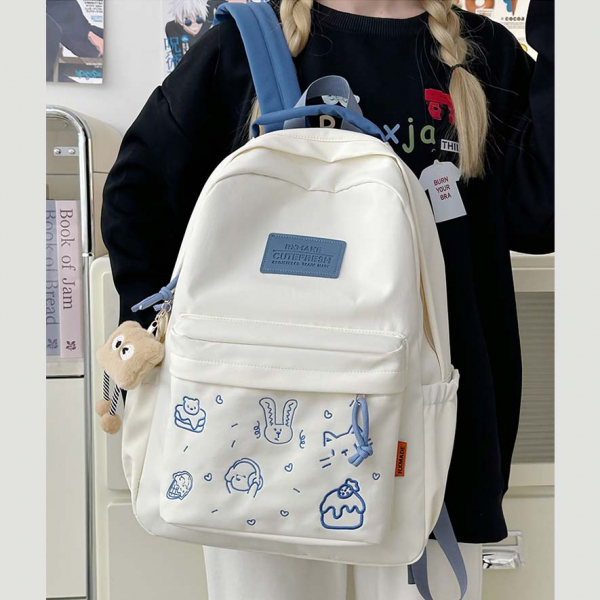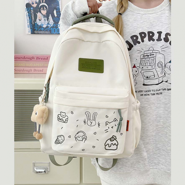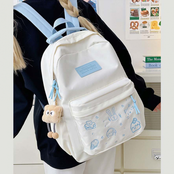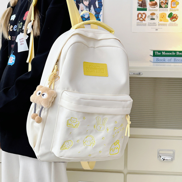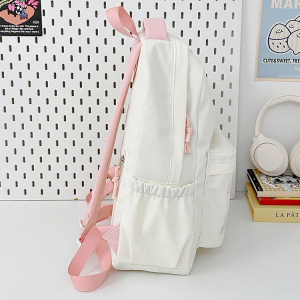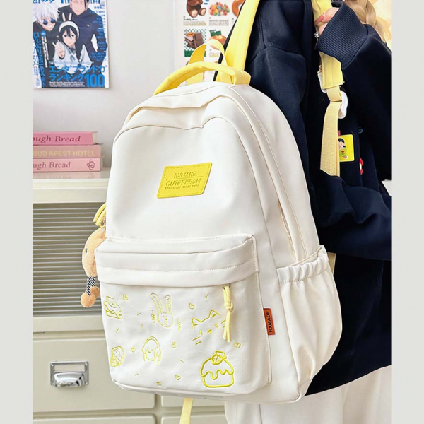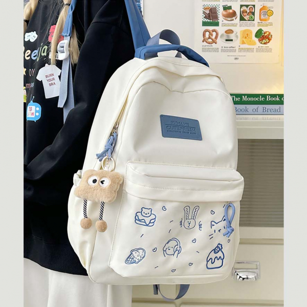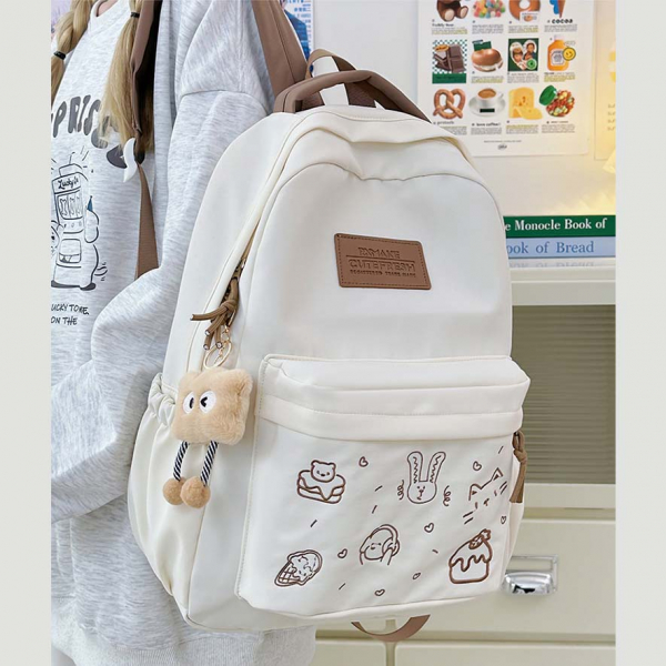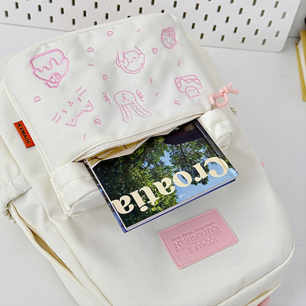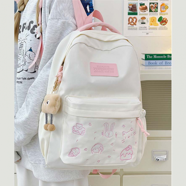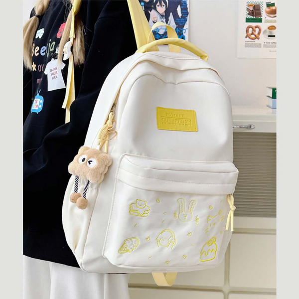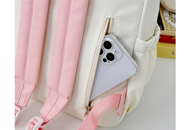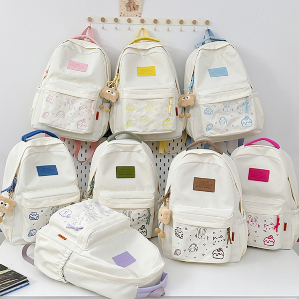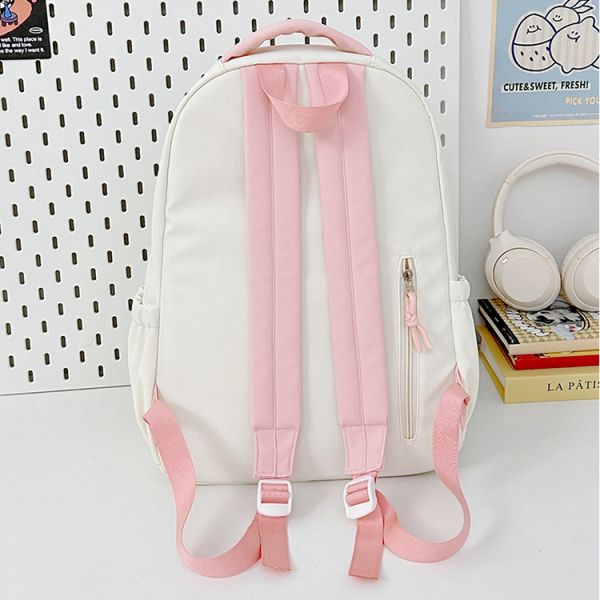 - Tông màu trắng sữa kết hợp dây đeo và khóa kéo nhiều màu sắc tạo phong cách trẻ trung, phù hợp với nhiều độ tuổi