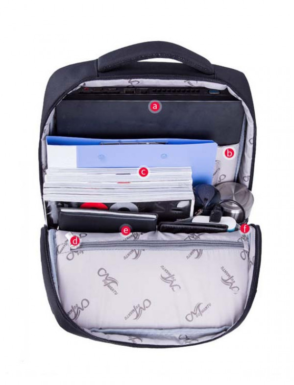 - Ngăn laptop chống sốc riêng biệt được thiết kế với lớp đệm dày bảo vệ tối đa thiết bị, chứa vừa laptop lên đến 15.6 inch