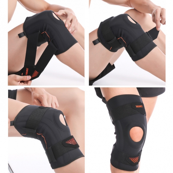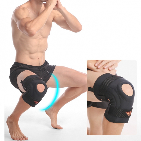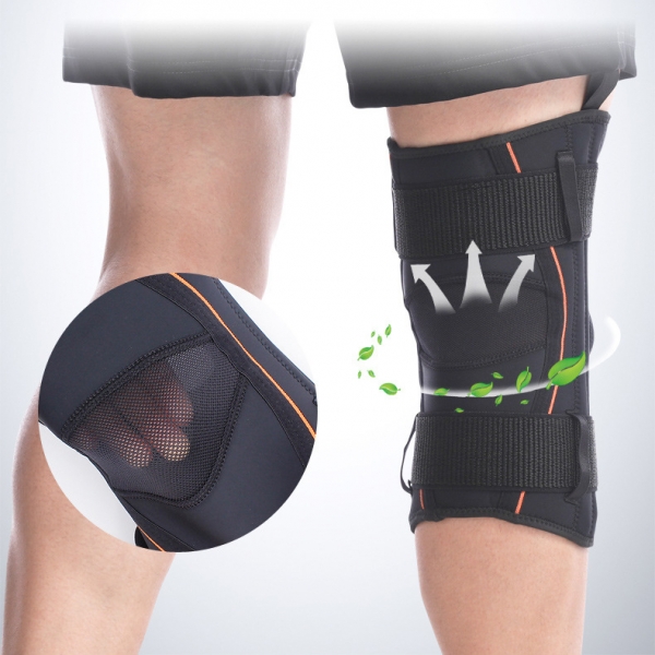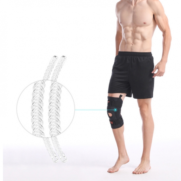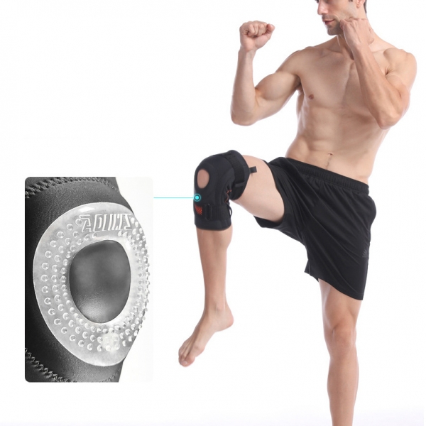 - Được trang bị bốn thanh lò xo có thể uống cong chịu lực tốt, miếng đệm silicone ôm trọn xương bánh chè
