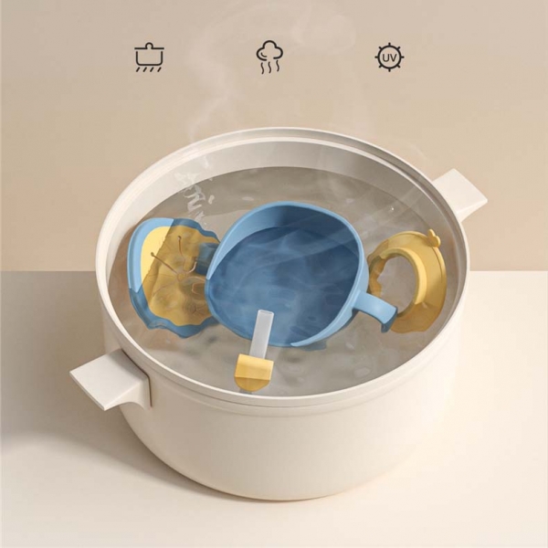 Bát có nắp và ống hút, có đế hút chân không hạn chế mọi rủi ro như trượt, lật, đổ bát ăn. Thuận lợi khi cho bé ăn hay bé tự xúc ăn.