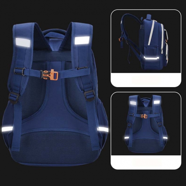 Với 2 đường phản quang phản xạ lại luồng chiếu sáng trong môi trường tối, thiếu ánh sáng được gắn trên balo giúp nhận biết vật thể và hạn chế va chạm.
