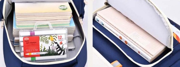 - Ngăn chính rộng rãi đựng sách vở, ngăn phụ phía trước và ngăn phụ 2 bên để dụng cụ học tập và đựng nước, ô che nắng tiện dụng