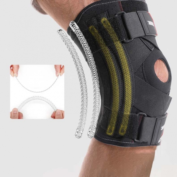 - Tích hợp lò xo ở hai bên, giúp tăng cường độ ổn định, giảm áp lực lên đầu gối, đồng thời hỗ trợ chuyển động linh hoạt và tự nhiên