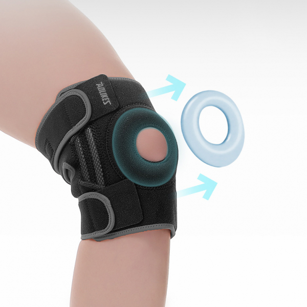 - Thiết kế thông minh với vòng đệm bảo vệ xương bánh chè, giúp cố định khớp gối, giảm áp lực và ngăn ngừa chấn thương