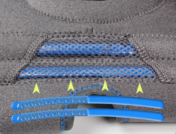 - Sản phẩm có 4 thanh nẹp dạng dẻo hai bên cố định và giảm áp lực lên gối