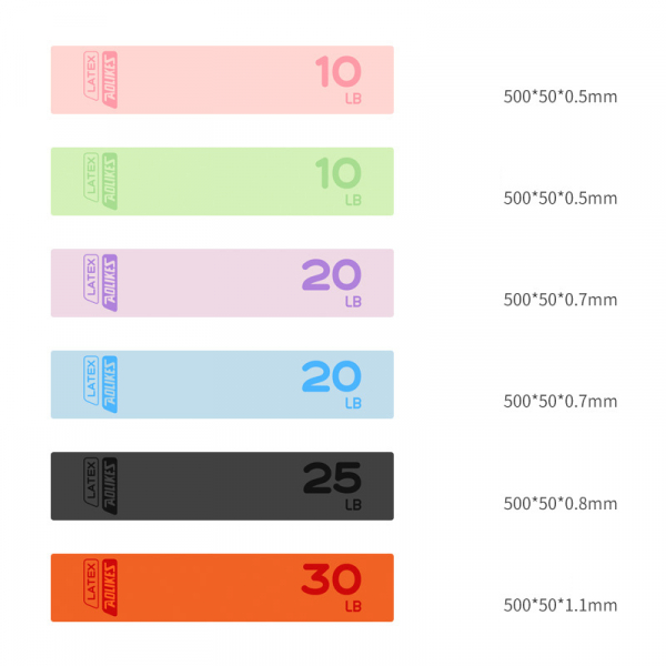 - Dây tập được phân loại theo màu sắc cấp độ từ bài dễ đến khó, bạn lựa chọn loại dây phù hợp trước khi tập. Lực kéo và độ dày: