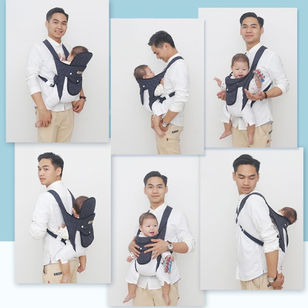 - Dễ dàng sử dụng có thể địu với nhiều tư thế khác nhau phía trước ngực hoặc sau lưng