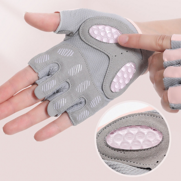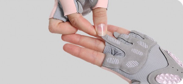- Lòng bàn tay có nhiều hạt Silicone, giúp chống trượt, gia tăng ma sát khi cầm nắm cái thiết bị tập
