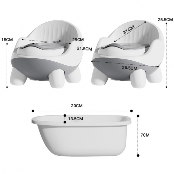 - Kích thước nhỏ gọn, dễ dàng đặt trong phòng tắm, phù hợp cho bé từ 6 tháng đến 6 tuổi