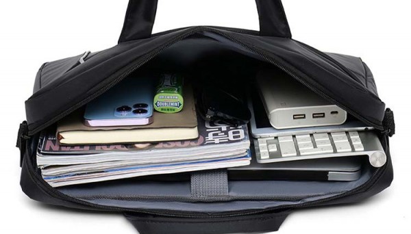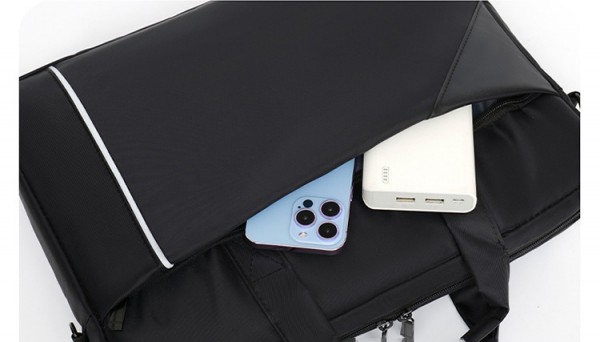 - Ngăn phụ được bố trí ở mặt trước của túi, là vị trí để sạc, chuột, bút viết, sổ tay, và các phụ kiện nhỏ khác