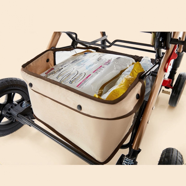 - Bánh xe của xe đẩy to, giảm xóc và di chuyển êm ái, xoay chiều linh hoạt, giúp ba mẹ đẩy xe nhẹ nhàng