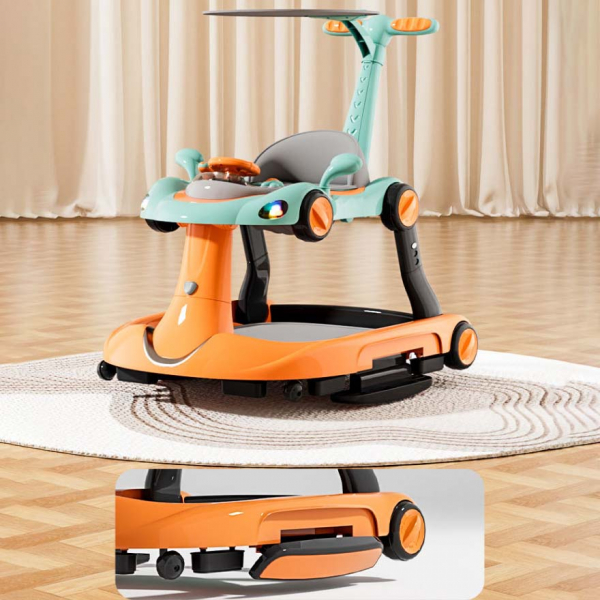 Xe tập đi cao cấp DT568 được thiết kế mô phỏng theo hình dáng ô tô thể thao hiện đại, kết hợp gam màu tươi sáng cam – xanh ngọc bắt mắt, giúp bé thích thú ngay từ cái nhìn đầu tiên. Đây là sản phẩm 4 trong 1 đa năng, vừa là xe tập đi, xe đẩy, xe bập bênh, vừa có thể làm xe chòi chân, mang đến nhiều trải nghiệm vận động cho bé